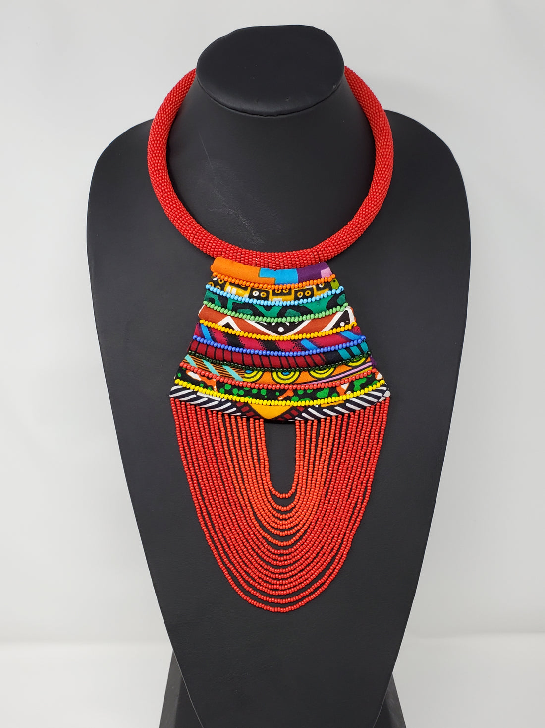 Nkiruka Ankara and Beaded Wave Necklace Multicolour