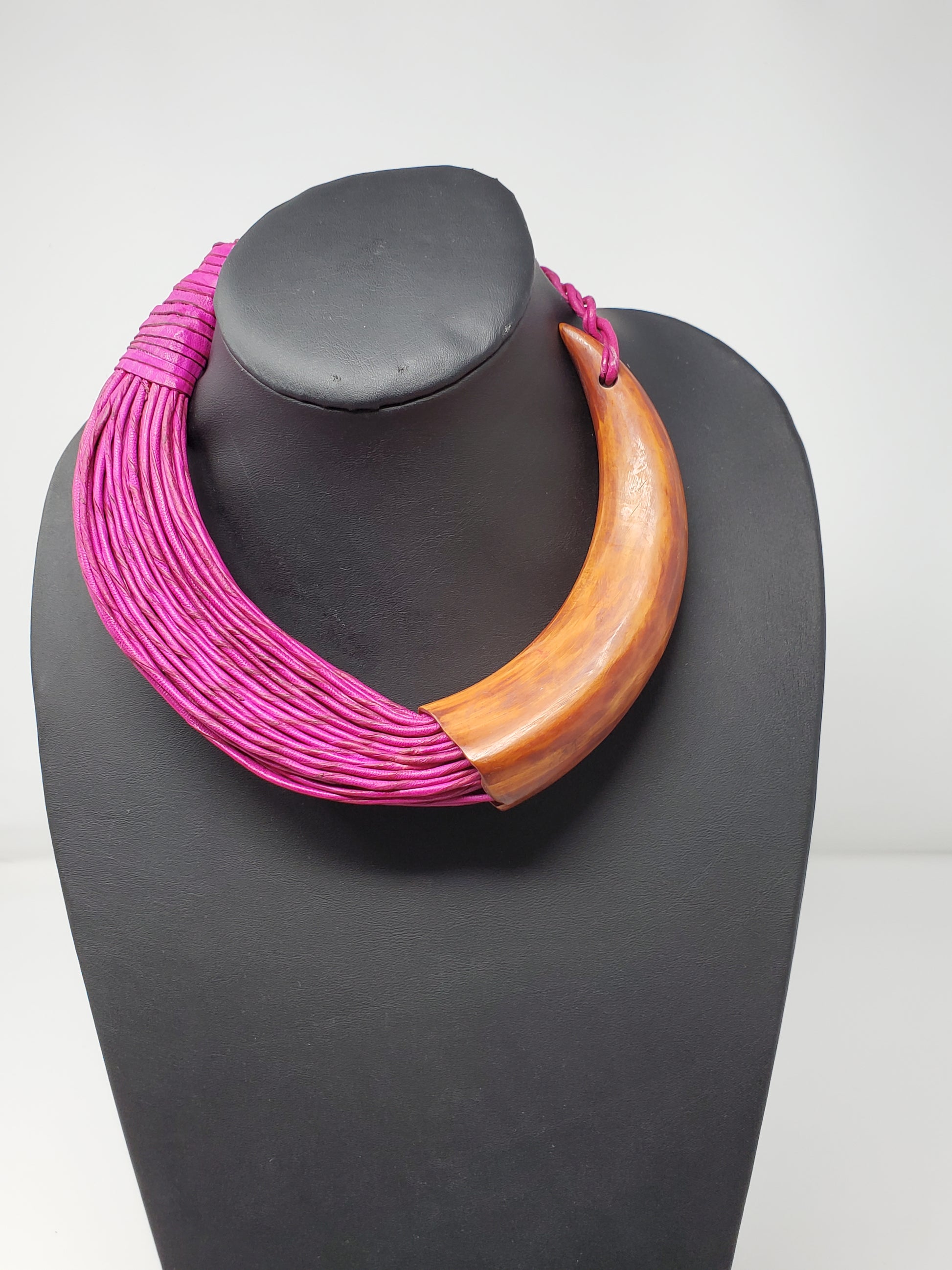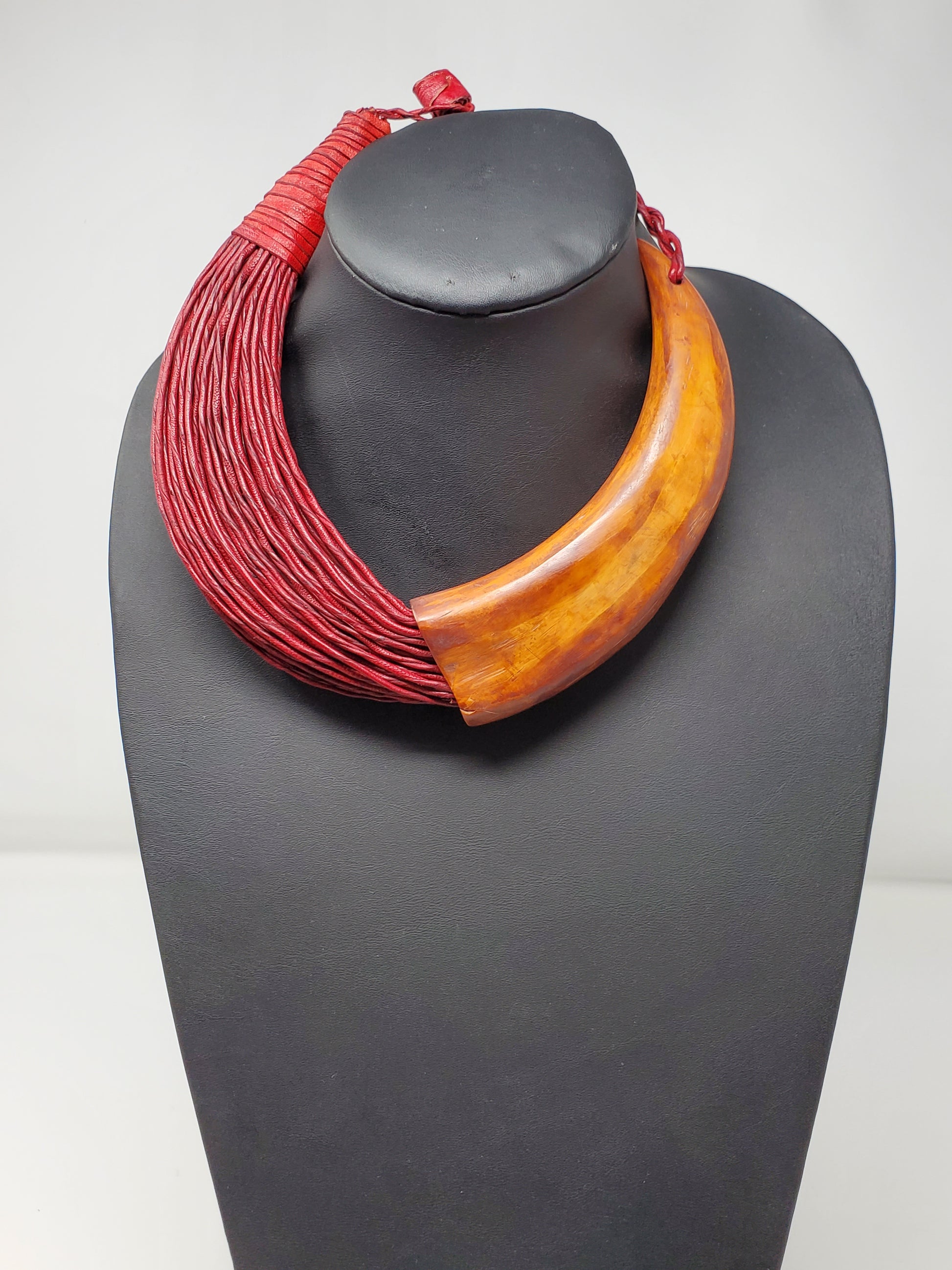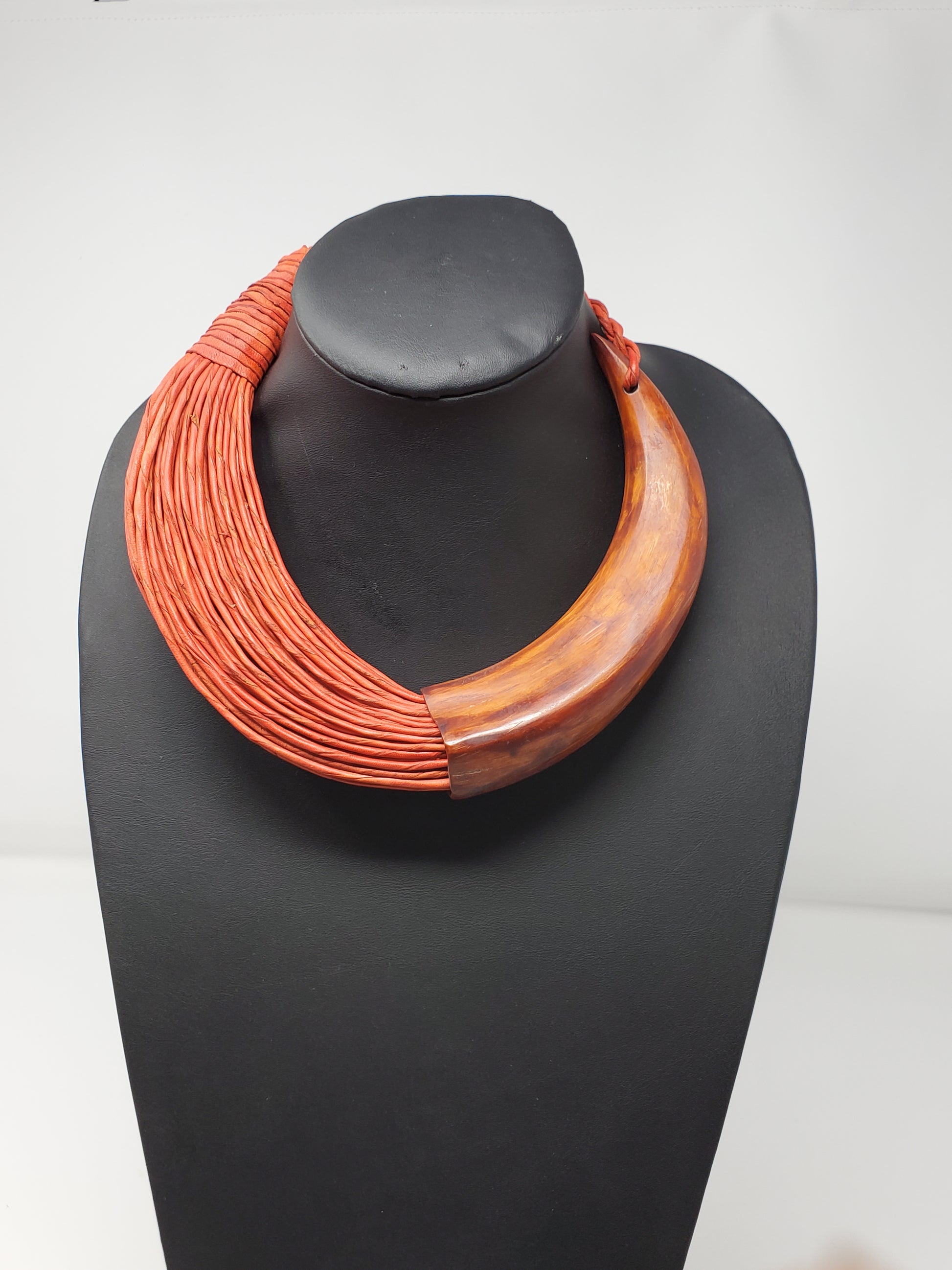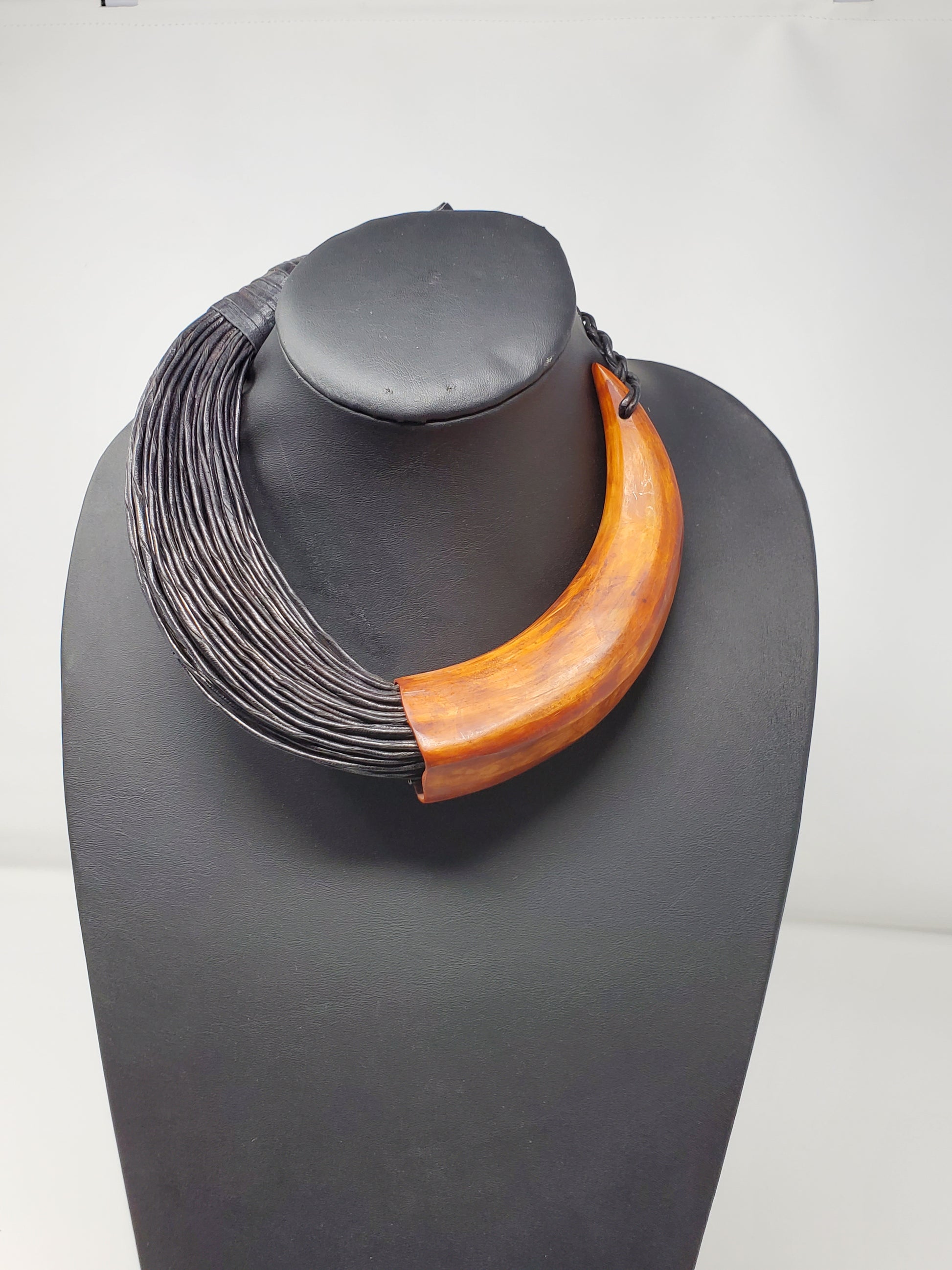 Non-adjustable 18-inch neckline diameter with horn pendant length of 5.5 inches.